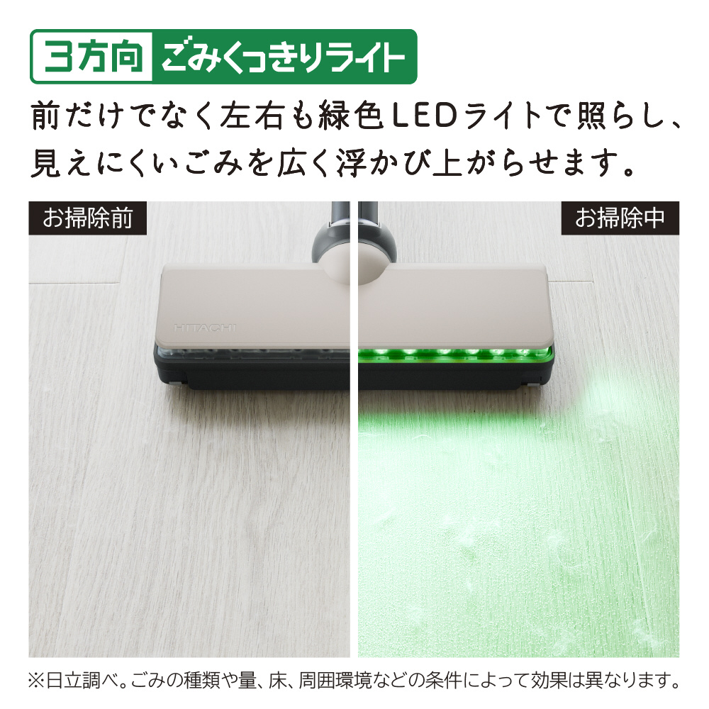 もっとも明るく感じる波長に近い緑色のLEDライトで見えにくいごみも浮かび上がらせます(※)。