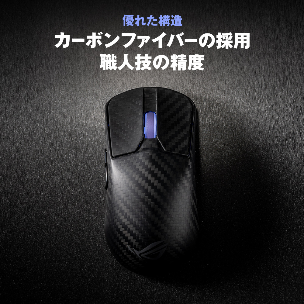 カーボンファイバー複合材料を採用した47gのROG Harpe Ace Extremeは、次世代のパフォーマンス、精密工学、そしてプロゲーマーも認めたデザインが見事に融合しています。これは単なるマウスではなく、あなたの秘められた力を引き出すためのマスターピースです。