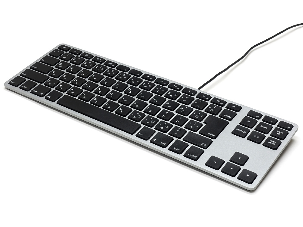 テンキーなしの美しいアルミ筐体のキーボードです。