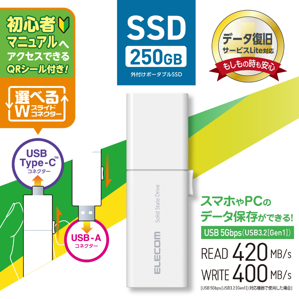「USB Type-C(TM)/USB-Aコネクター対応外付けポータブルSSD」