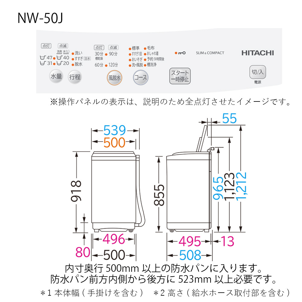 全自動洗濯機 2ステップウォッシュ ピュアホワイト NW-50J-W [洗濯5.0kg /簡易乾燥(送風機能) /上開き]【生産完了品】