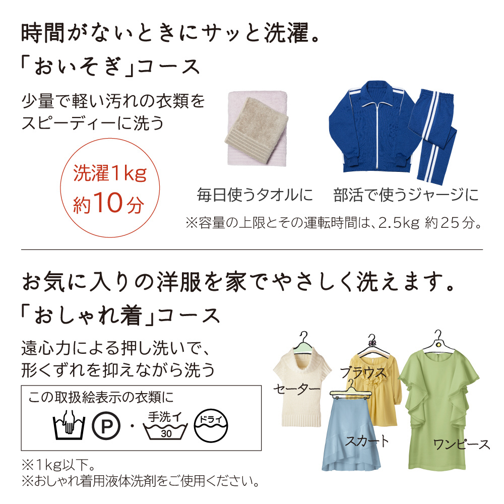 ●少量の軽い汚れの衣類をはやく洗う「おいそぎ」コース