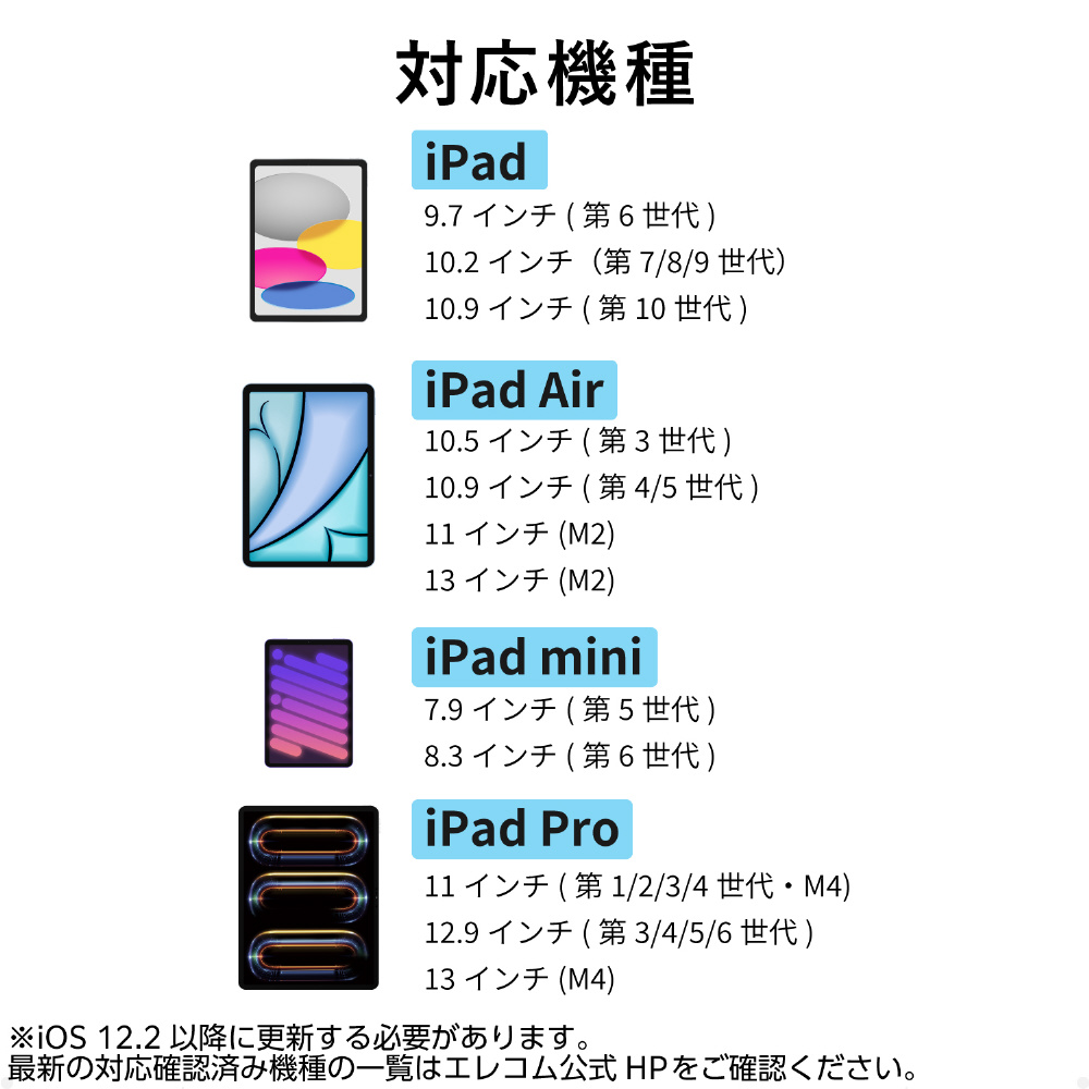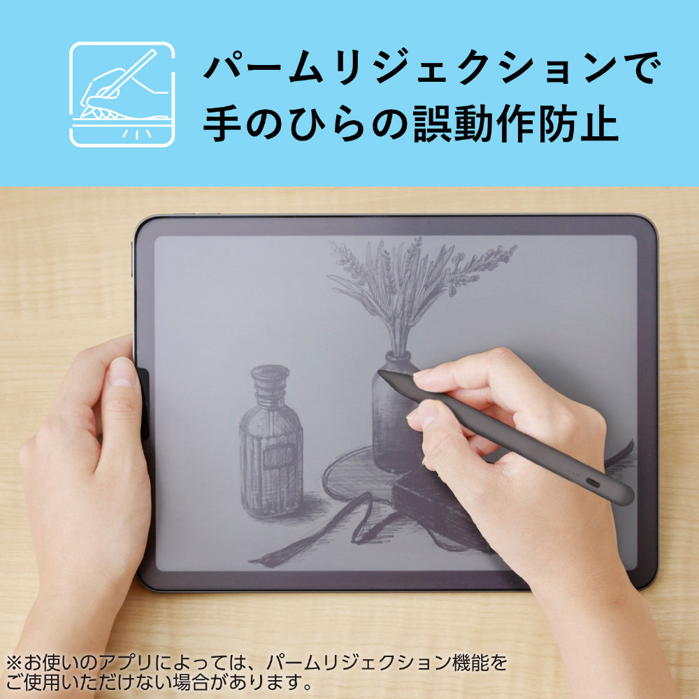 ※金属製のペン先を使用する場合は、iPadの画面を傷つける恐れがあるため、必ず画面保護フィルムを貼ってご使用ください。