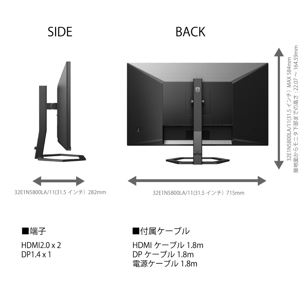 PCモニター ブラック 32E1N5800LA/11 [31.5型 /4K(3840×2160) /ワイド /60Hz]