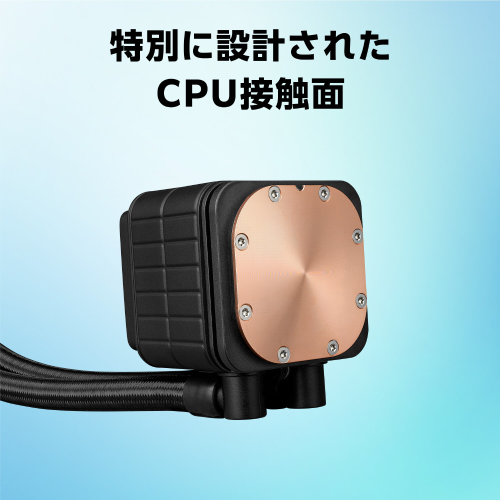 Prime LC ARGBは、特別設計されたCPU接触面とフィンアレイ、インフィニティミラー効果のあるウォーターブロック、ARGBファンとAuraライティングを搭載した簡易水冷クーラー