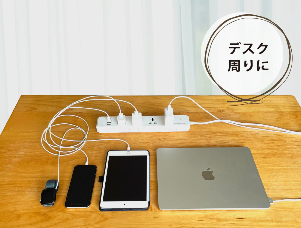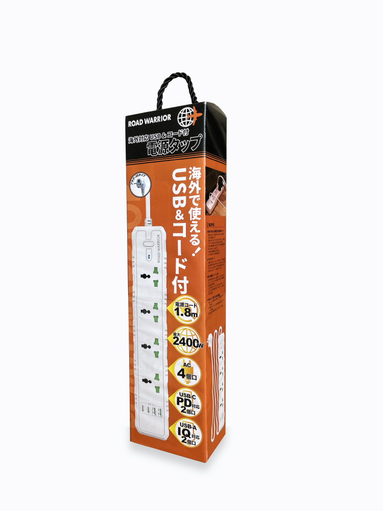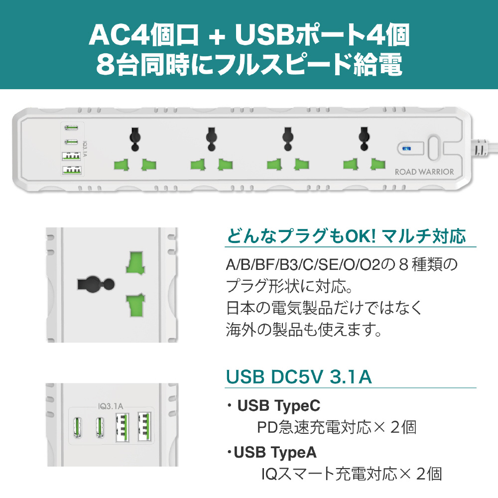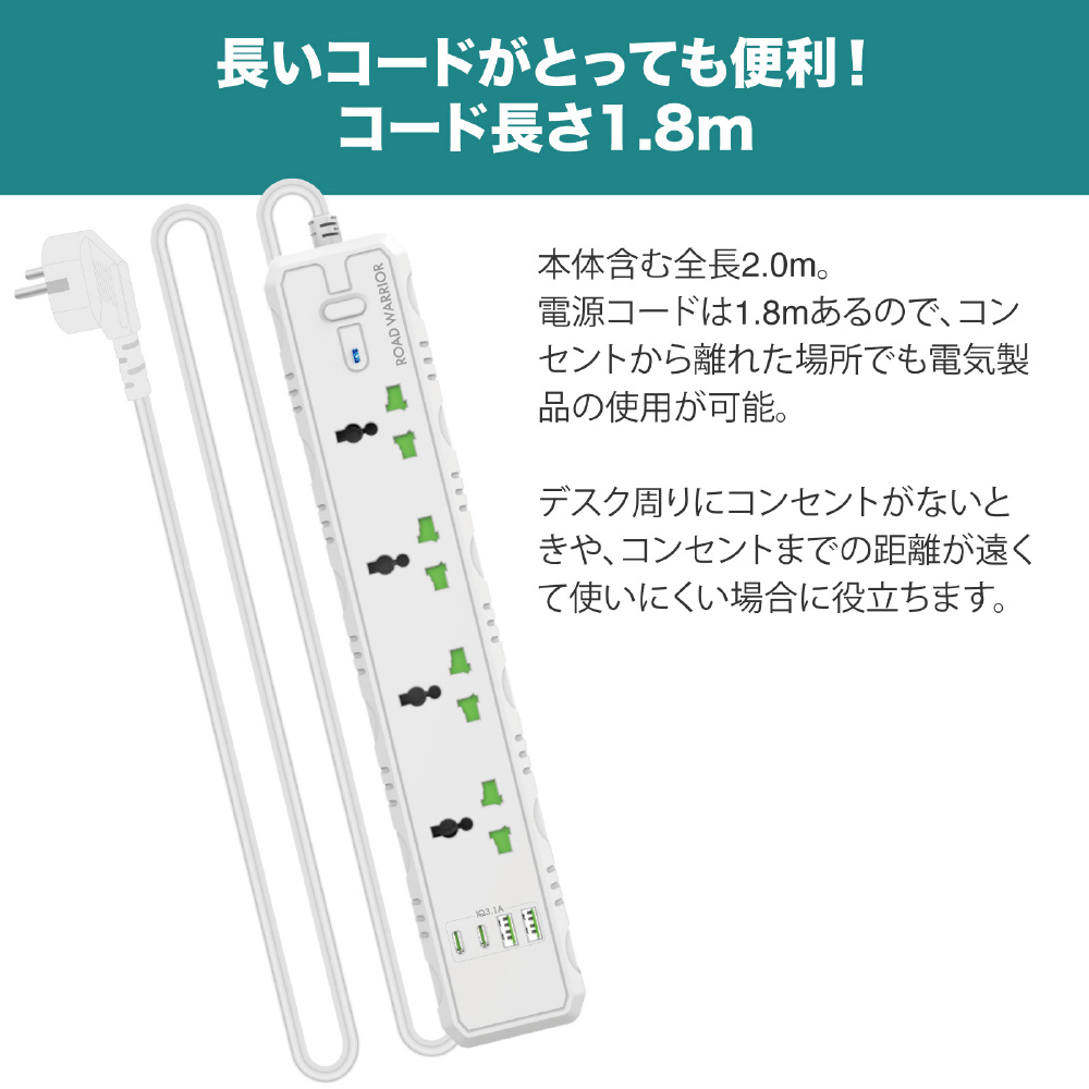海外対応USB&コード付き電源タップ ロードウォーリア ホワイト RW130WH