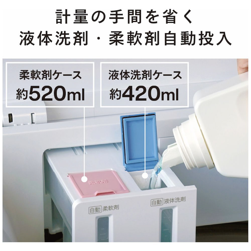 WM-EA90Wは、液体洗剤・柔軟剤自動投入機能付きで洗濯の負担を軽減するゆとりのある容量の洗濯機です。