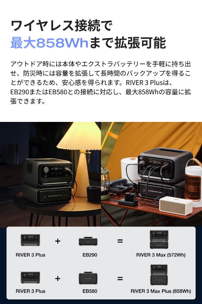 ポータブル電源 RIVER 3 Plus (290) EFRIVER3Plus-JP-CBOX [リン酸鉄リチウムイオン電池 /7出力 /AC・DC充電・ソーラー(別売) /USB Power Delivery対応]