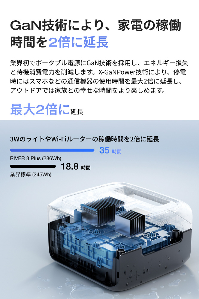 業界初 GaNテクノロジー搭載で、エネルギー損失と待機消費電力を最小限に抑えました。