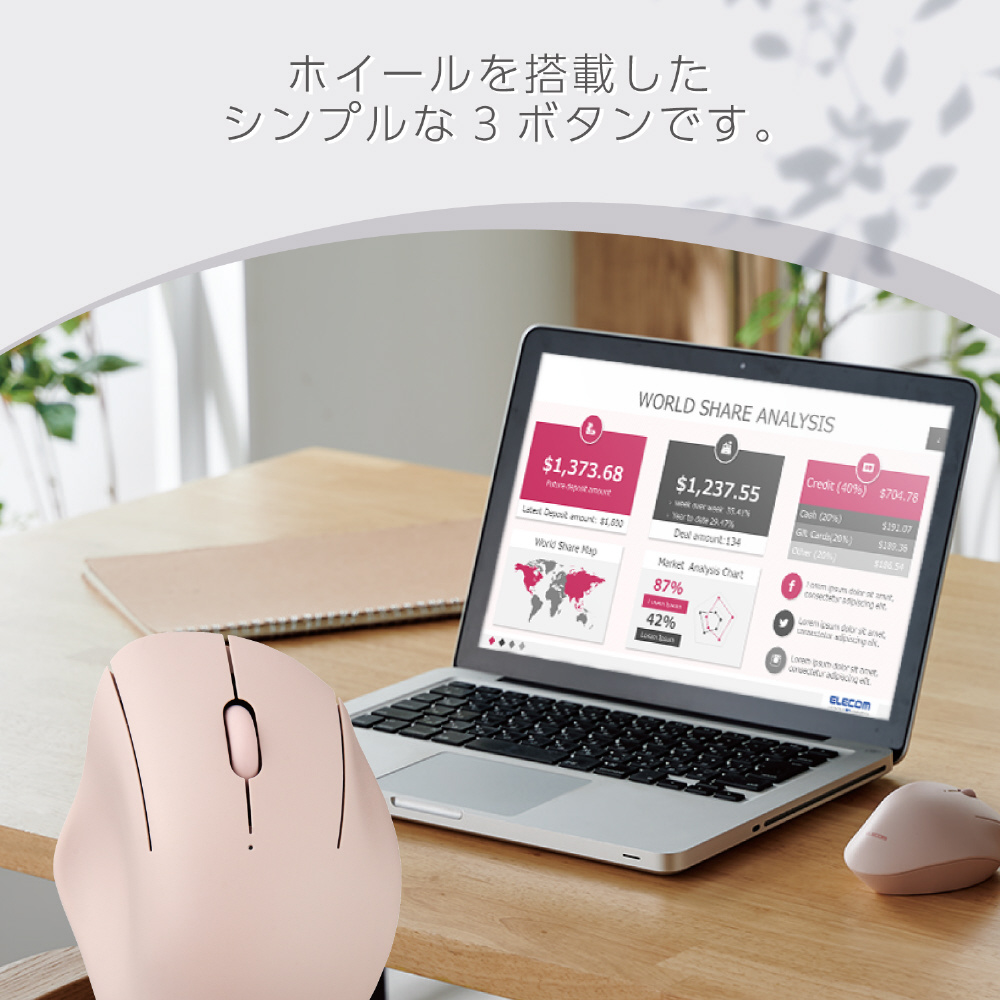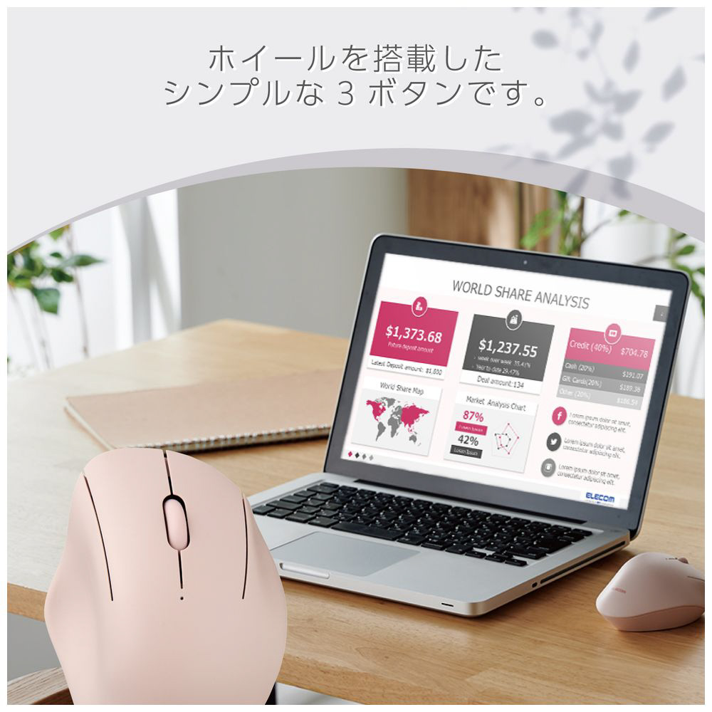 マウス SHELLPHA 抗菌 Mサイズ(Chrome/Android/iPadOS/iOS/Mac/Windows11対応) ピンク M-SH10MBSKPN [BlueLED /無線(ワイヤレス) /3ボタン /Bluetooth・USB] 【864】