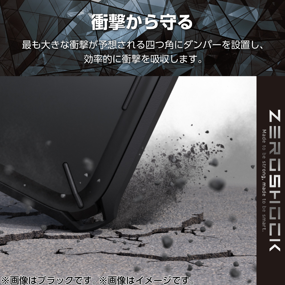 衝撃吸収性の高い特殊エラストマーを内部に装備した、超耐衝撃性ZEROSHOCKケースです。