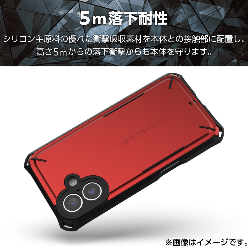 iPhone 16 ケース ハイブリッド カバー 衝撃吸収 ストラップホール付 フィルム付 ZEROSHOCK 極限保護 レッド PM-A24AZEROSRD