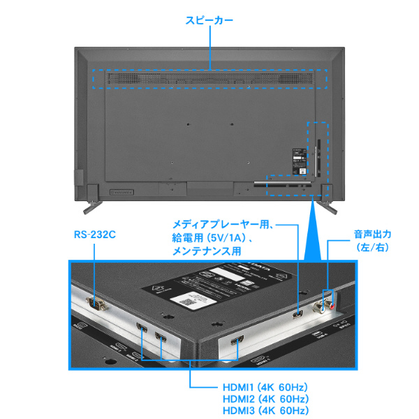 高輝度かつ広視野角パネルを採用しているため、明るい場所でも視認性が良く、オフィスの大会議室での利用はもちろんデジタルサイネージとしての利用もおすすめです。