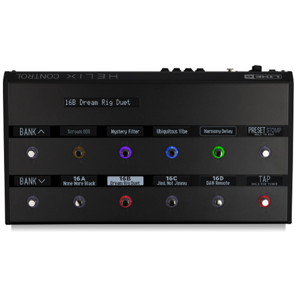 Helix Rackは殆どのMIDI機器でコントロールすることができますが、Helix Controlはフロア用Helixと同等の機能を備えています。カラーLEDリングが搭載された12基のキャパシティブタッチ・フットスイッチと、カスタマイズが可能なスクリブル・ストリップ、3基のエクスプレッション・ペダル用入力端子が用意されており、Pedal Edit Modeではハンズフリーでの編集も可能です。