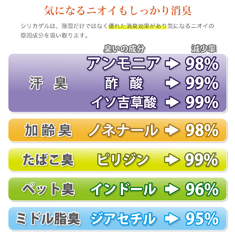 “除湿”だけでなく“消臭”までしてくれるのがこのマジカルドライの素晴らしいところ。汗臭や加齢臭など、寝具にこびりつくニオイは適度にお手入れをしないと部屋中に充満してしまいます。しかし、マジカルドライは、シリカゲルB型の機能によって睡眠中の段階でそれらを減少させ、睡眠環境を整えてくれる、まるで魔法のような敷パッドです。