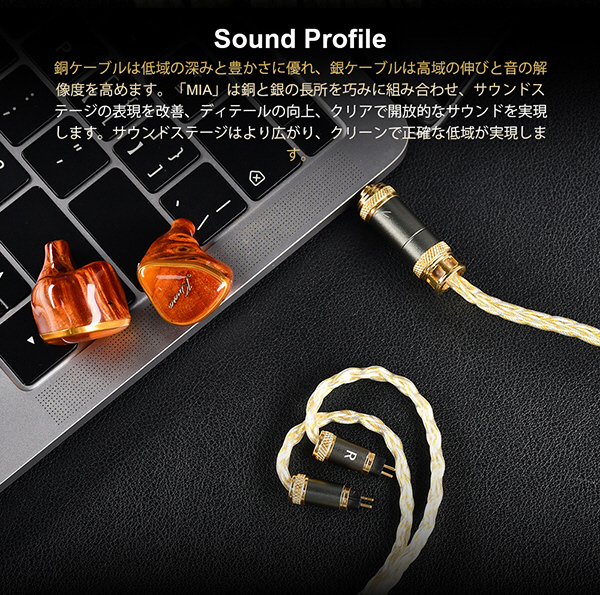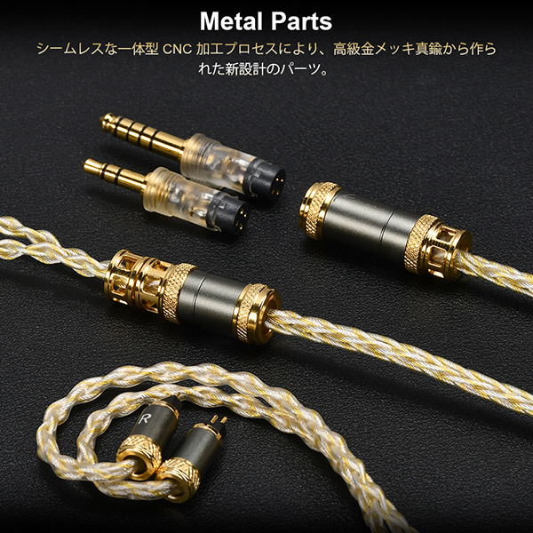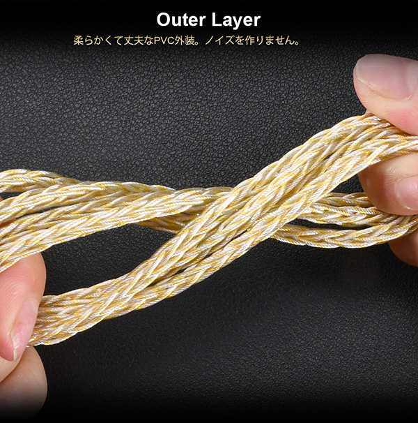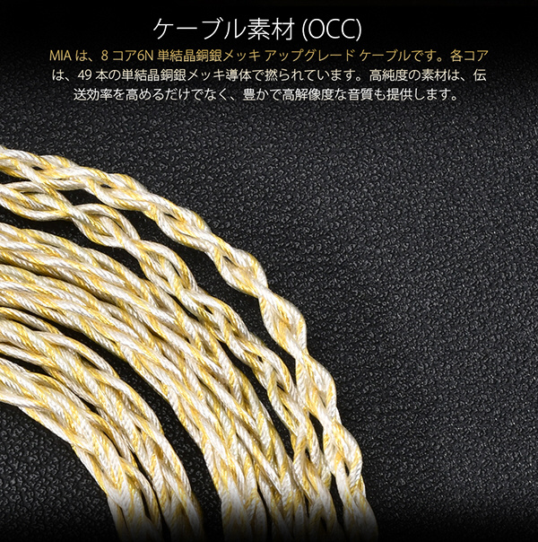 ハイグレード線材 線材は6N単結晶銅+シルバーコーティング 8コア 49*0.06mmを採用。非常のハイグレードで低域の強化と高域の伸びを同時に実現。