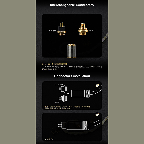 Kineraで初めて0.78 2Pin及びMMCXインターフェイスを脱着式とし交換可能なスイッチング方式を採用