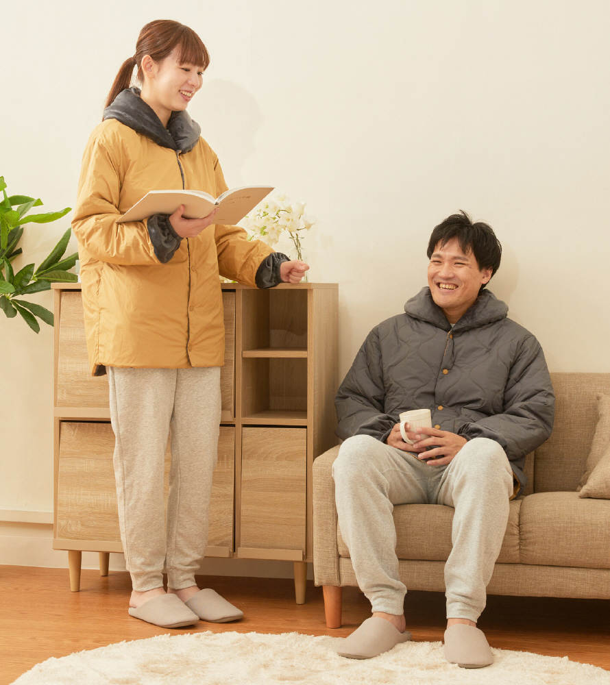 ●もっちり高密度織物・発熱+保温の中綿(テイジン V-Lap(R)BURNER)