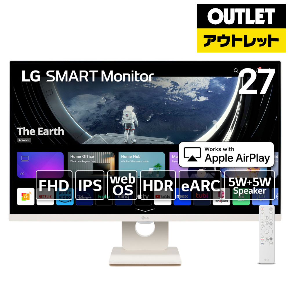 仕事も遊びも、この一台。私の暮らしにフィットする。お部屋に馴染む 27型 IPS フルHD スマートモニター。LG SMART Monitorは、仕事を快適にするモニターとしての機能はそのままに、世界中600以上のコンテンツが楽しめるwebOSを搭載。「仕事も遊びも、この1台」をコンセプトに、みなさまのワーク・ライフスタイルに寄り添った新しいパーソナルデバイスです。