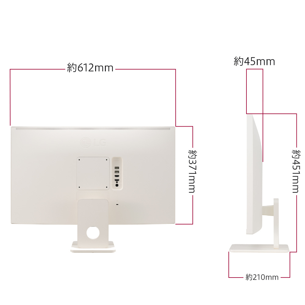 インテリアとの相性を踏まえ、モニター本体、リモコン、電源ケーブルまで高級感のあるマットなホワイトカラーで統一。デスクとお部屋のスペースを圧迫しないスリムなデザインに仕上げました。また、前:-5゚〜後:15°のチルト(縦角度調整) に対応しているので、姿勢や使用環境に合わせた画面の配置が可能です。