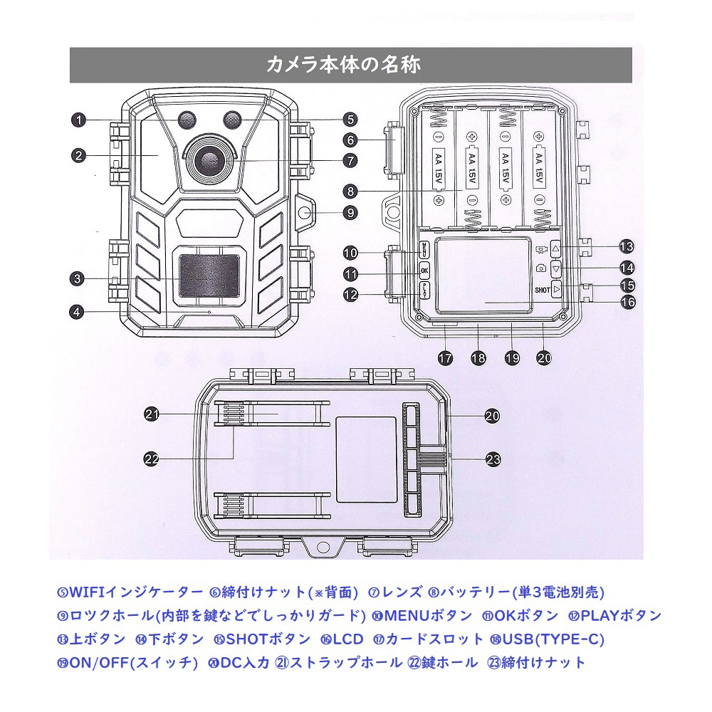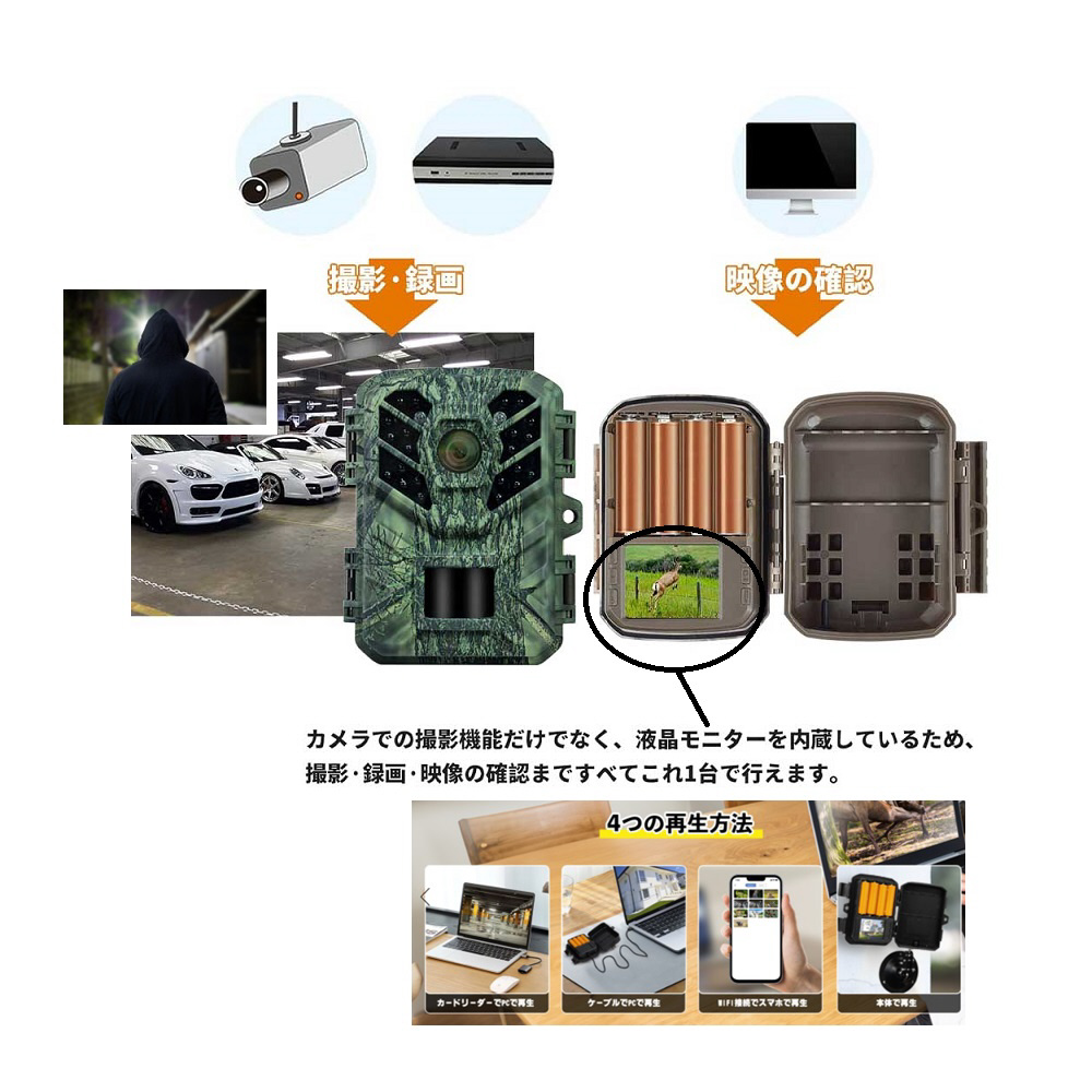 防犯・トレイルカメラ wifi対応・乾電池で使える!