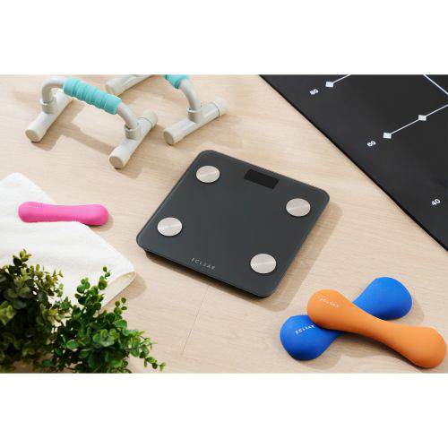 体重計 体組成計 ヘルスメーター Bluetooth スマホ連動 【 体重 体脂肪率 BMI 内臓脂肪レベル 皮下脂肪率 骨格筋率 骨量 基礎代謝 FFMI 9項目測定可 】 筑波大学 産学連携 専用アプリECLEAR Plus エクリア ブラック