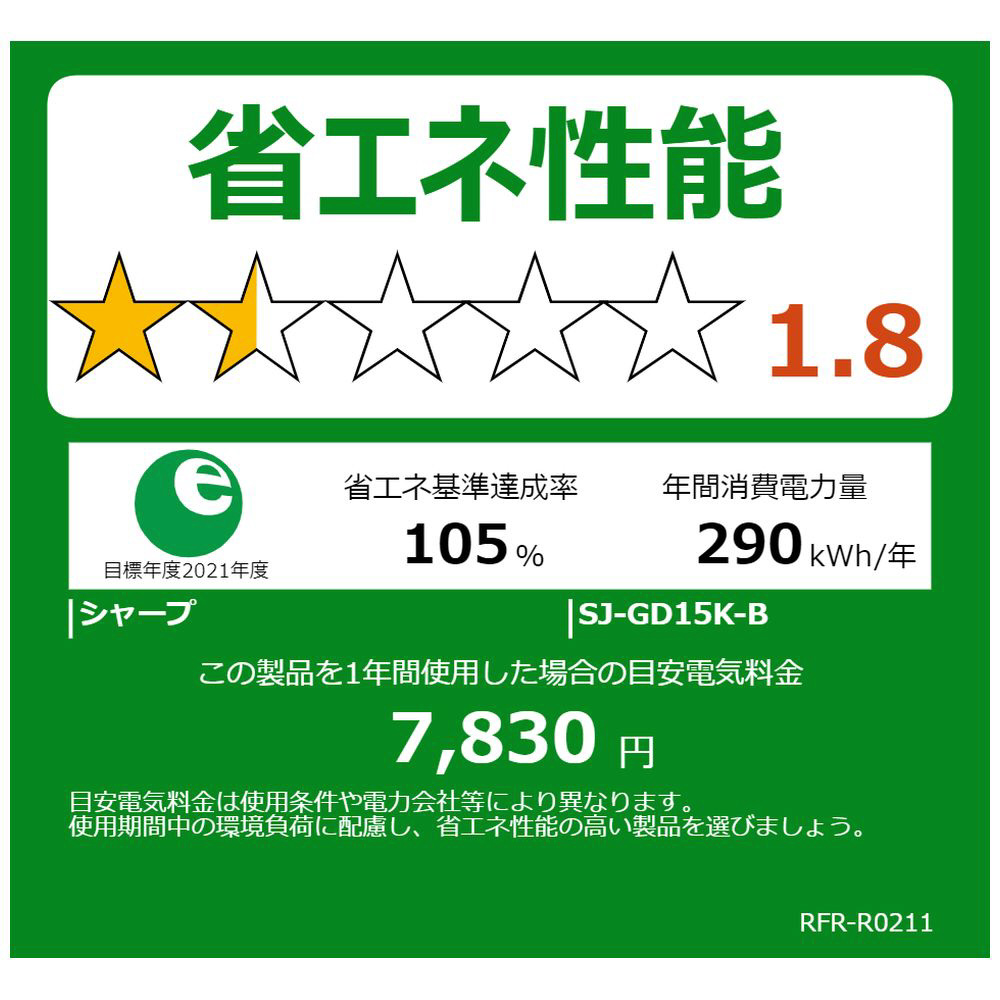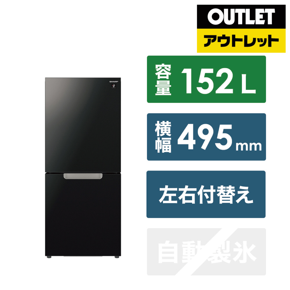 冷蔵庫 ピュアブラック SJ-GD15K-B [幅49.5cm /152L /2ドア /右開き/左開き付け替えタイプ /2023年]【生産完了品】
