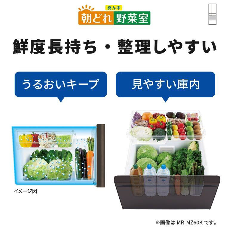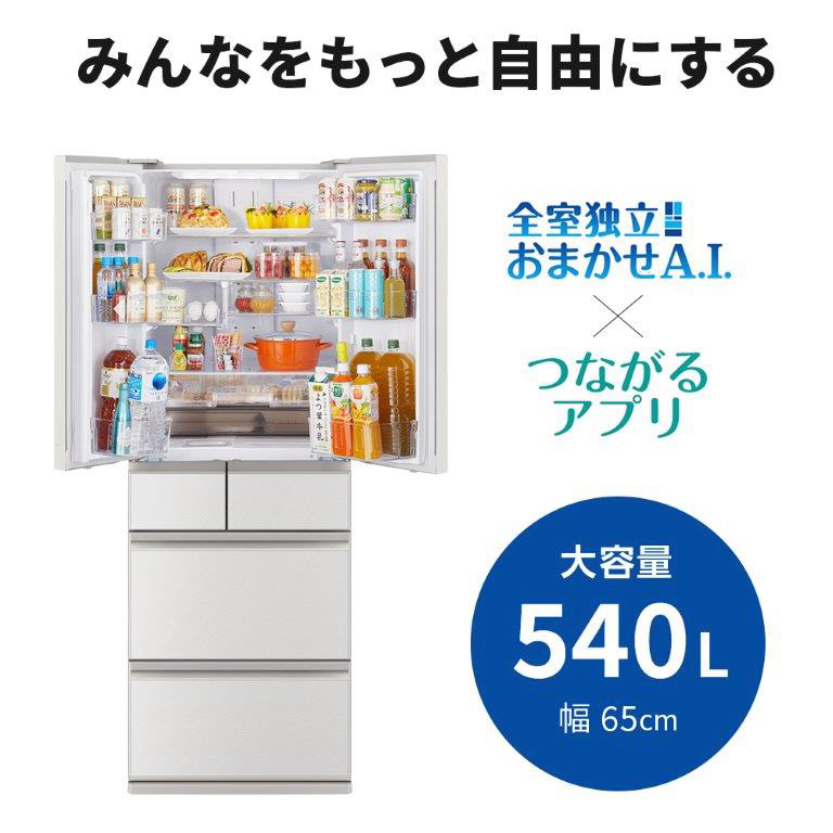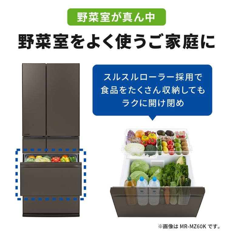 【基本設置料金セット】 冷蔵庫 MZシリーズ グランドリネンホワイト MR-MZ54K-W [幅65.0cm /540L /6ドア /観音開きタイプ /2024年]【生産完了品】