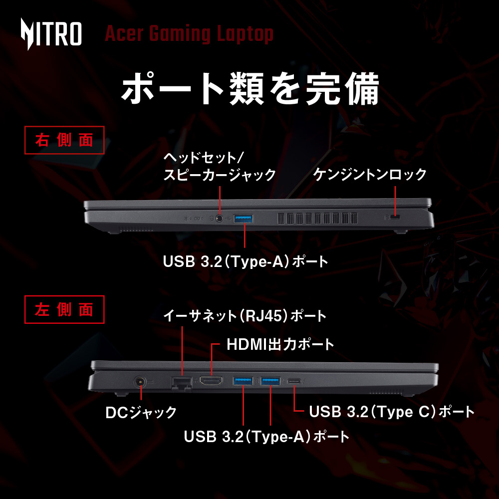 ゲーミングノートパソコン Nitro V 15 ブラック ANV15-51P-N76Y46/4[RTX4060]