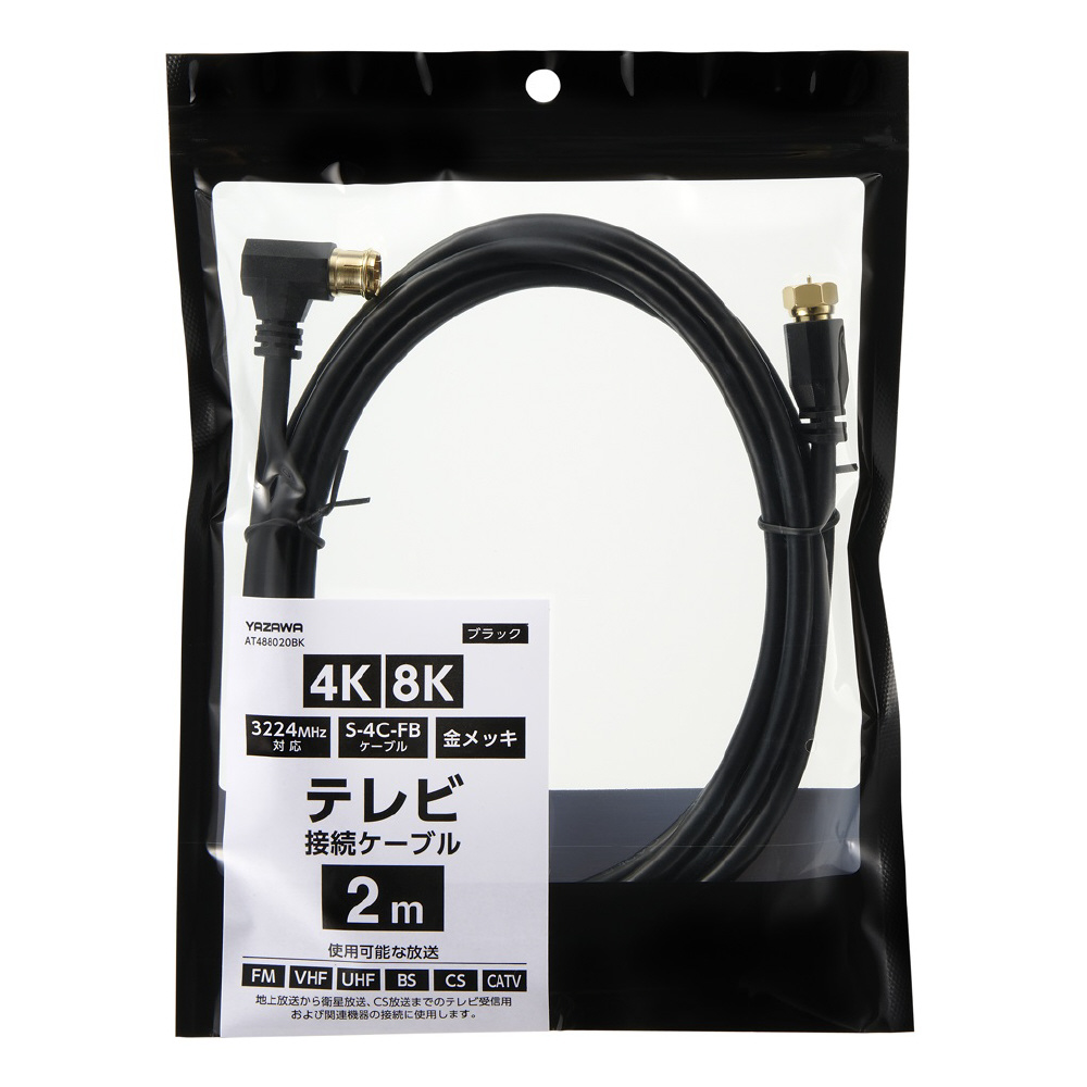 | 商品名 | アンテナケーブル 2m AT488020BK 3224MHz対応 S-4C-FBケーブル 金メッキ L 字差込式 黒 |