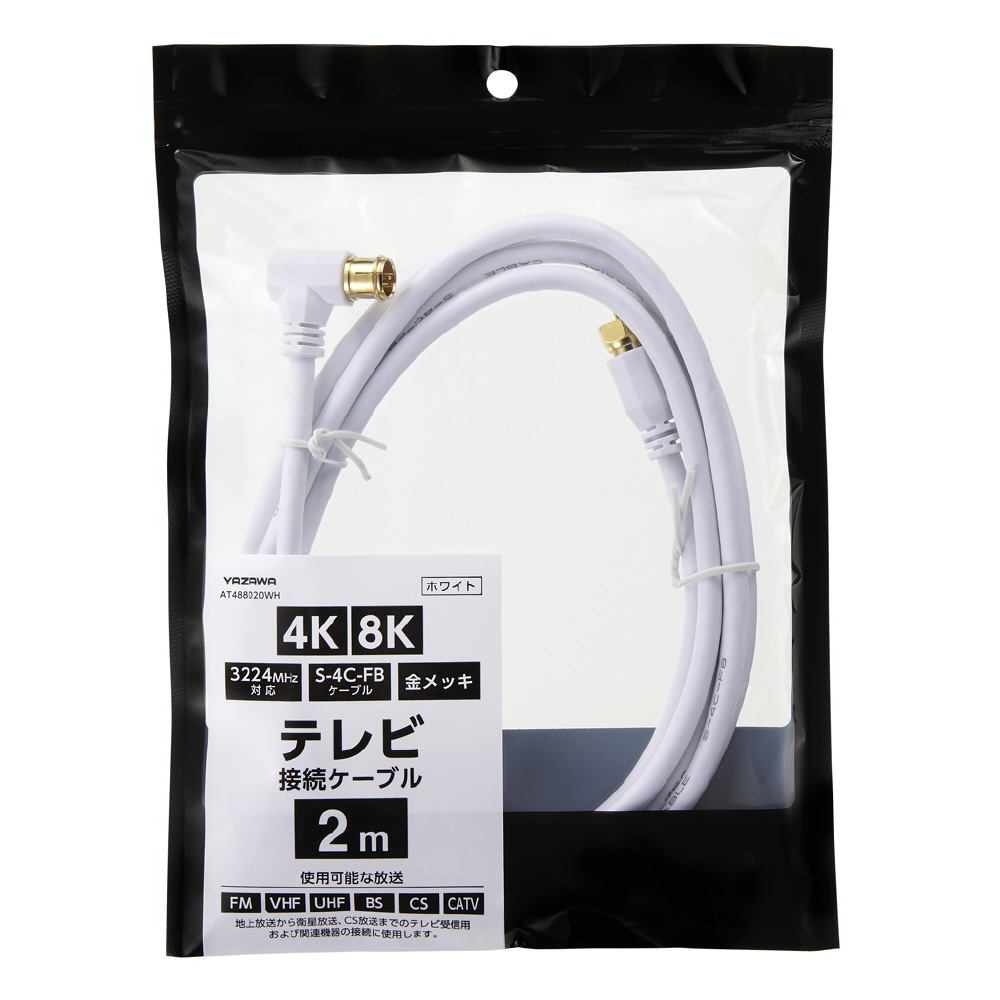 | 商品名 | アンテナケーブル 2m AT488020WH 3224MHz対応 S-4C-FBケーブル 金メッキ L 字差込式 白 |