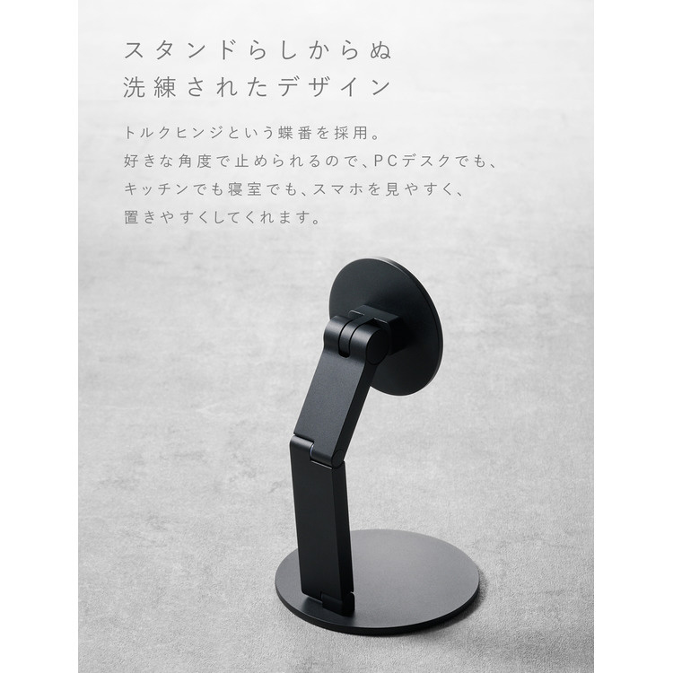 スッキリ立って、ピタっと装着。居場所になじむマグネットスマホスタンド。