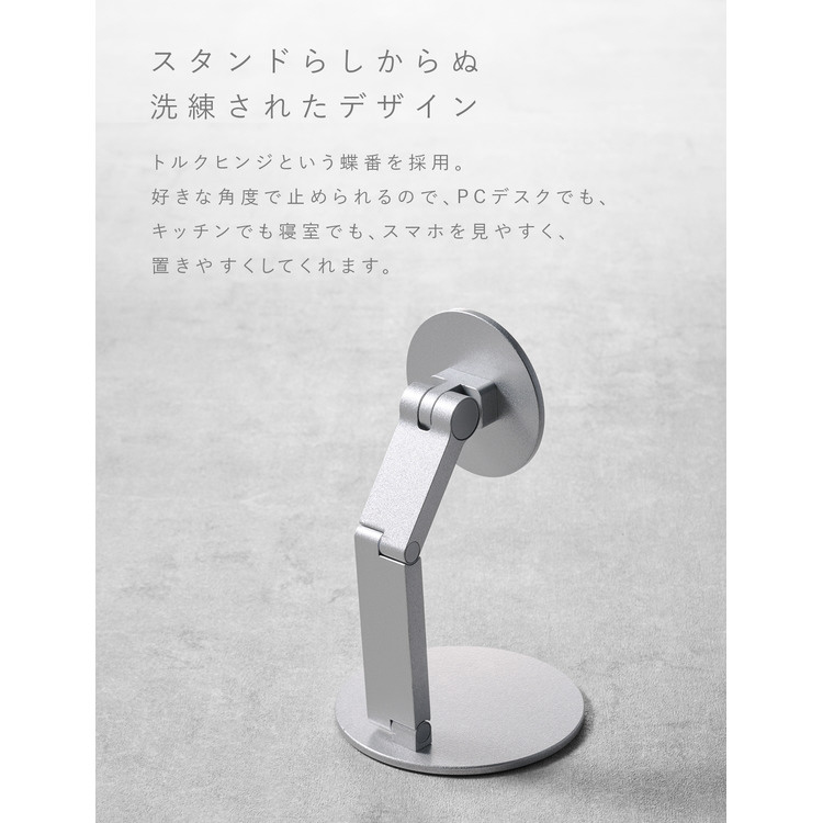 スッキリ立って、ピタっと装着。居場所になじむマグネットスマホスタンド。