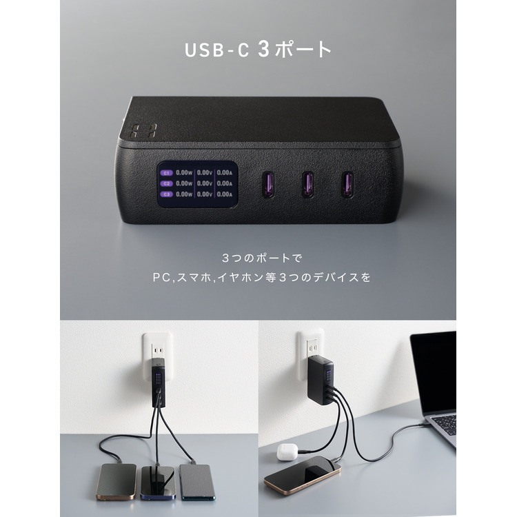 コンパクトで軽量、最大3ポート同時充電