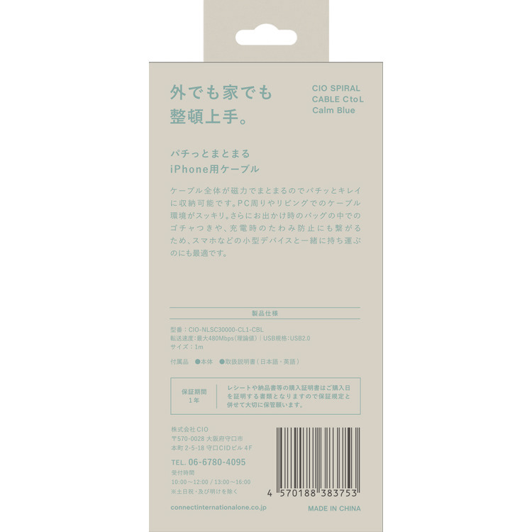 スパイラルケーブル Type-C to Lightning 1m カームブルー CIO-NLSC30000-CL1-CB