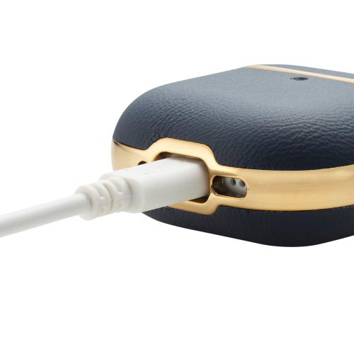 ソフトレザーにゴールドの縁取りを施した、レザーアクセサリーのようなAirPods (第4世代)用ケースです。高級感のあるゴールドの縁取りやカラビナで、持ち運ぶ際にコーディネートのアクセントとしても楽しめます。MagSafe充電に対応し、しなやかで弾力性のある素材で本体をしっかりと守ります。ケースを装着したままで、ワイヤレス充電や純正ケーブルでの充電が可能です。