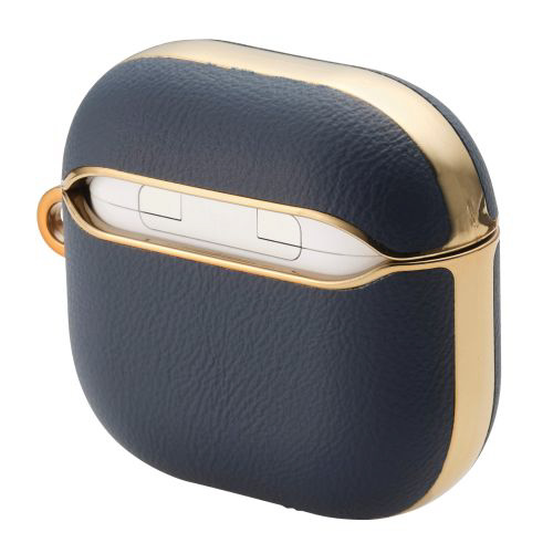 AirPods 4 ケース 用 ソフトレザー カバー ( ワイヤレス / MagSafe 充電対応 ) 衝撃吸収 落下防止 カラビナ付 メッキ加工 ブルー AVA-AP06PLMBU