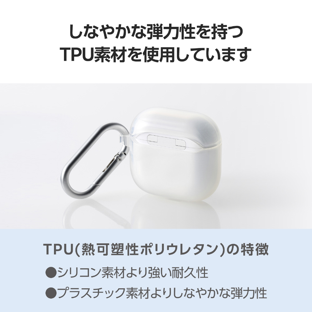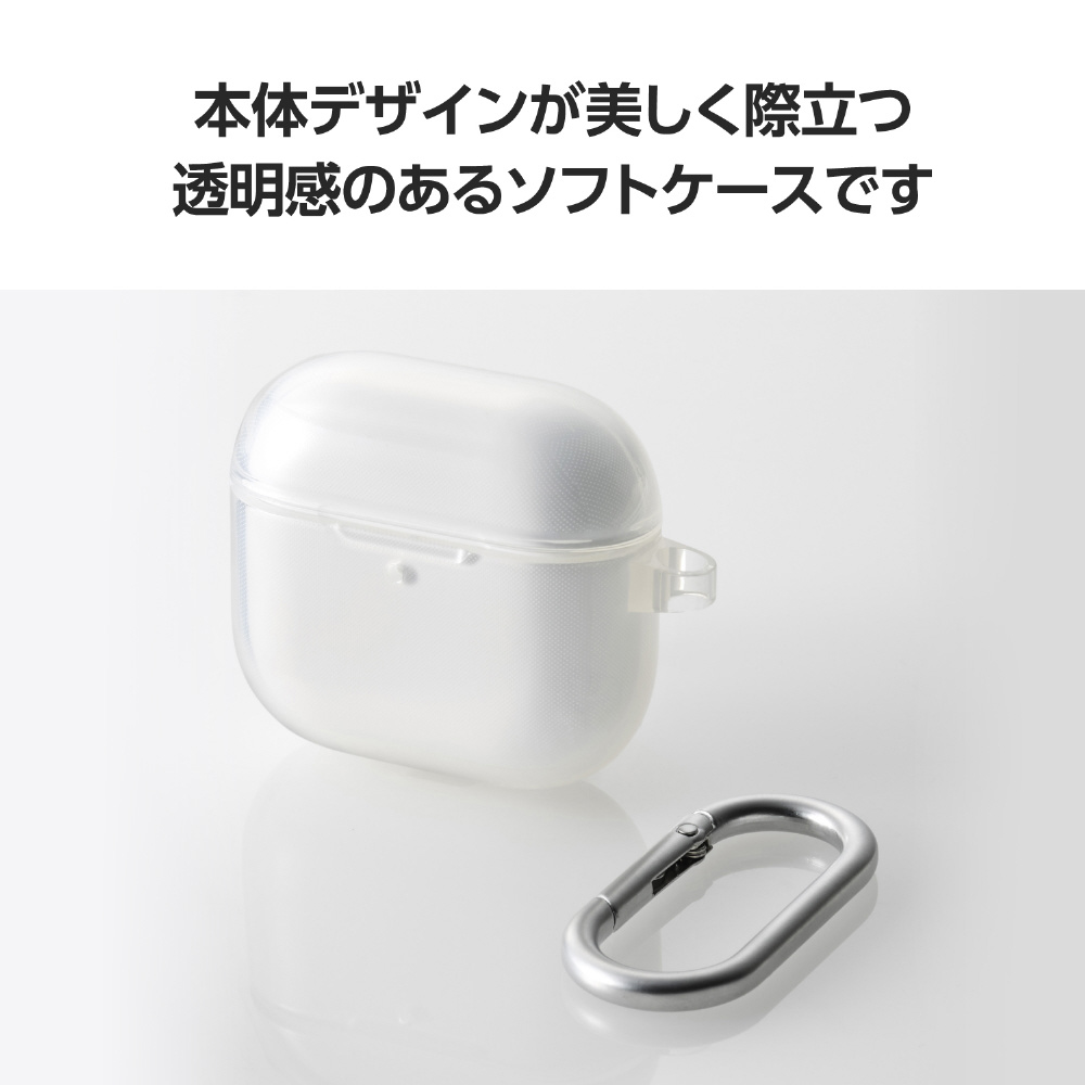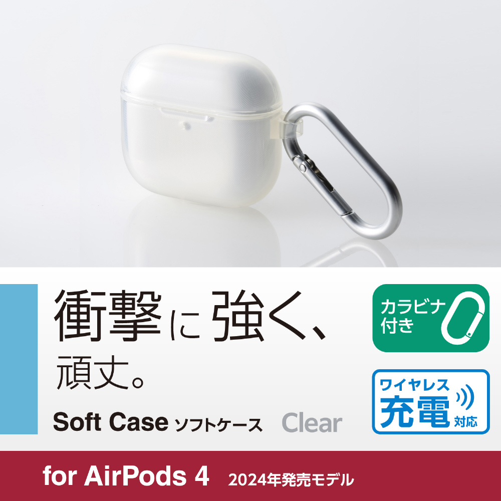 AirPods 4 ケース 用 ソフト カバー ( ワイヤレス / MagSafe 充電対応 ) 落下防止 カラビナ付 クリア AVA-AP06UCCR
