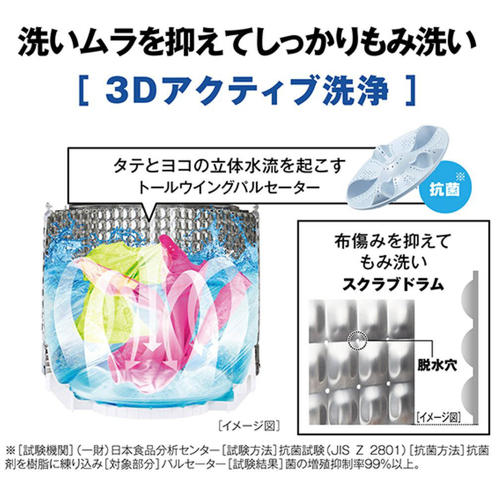 タテとヨコ方向の立体水流で洗いムラを抑え、しっかりもみ洗いします。