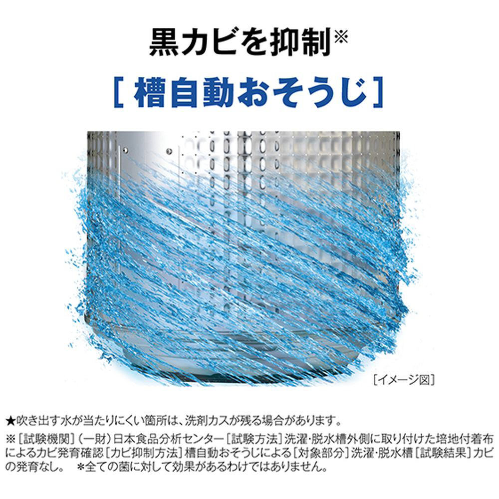 ※[試験機関](一財)日本食品分析センター[試験方法]洗濯・脱水槽外側に取り付けた培地付着布によるカビ発育確認[カビ抑制方法]槽自動おそうじによる[対象部分]洗濯・脱水槽[試験結果]カビの発育なし。*全ての菌に対して効果があるわけではありません。
