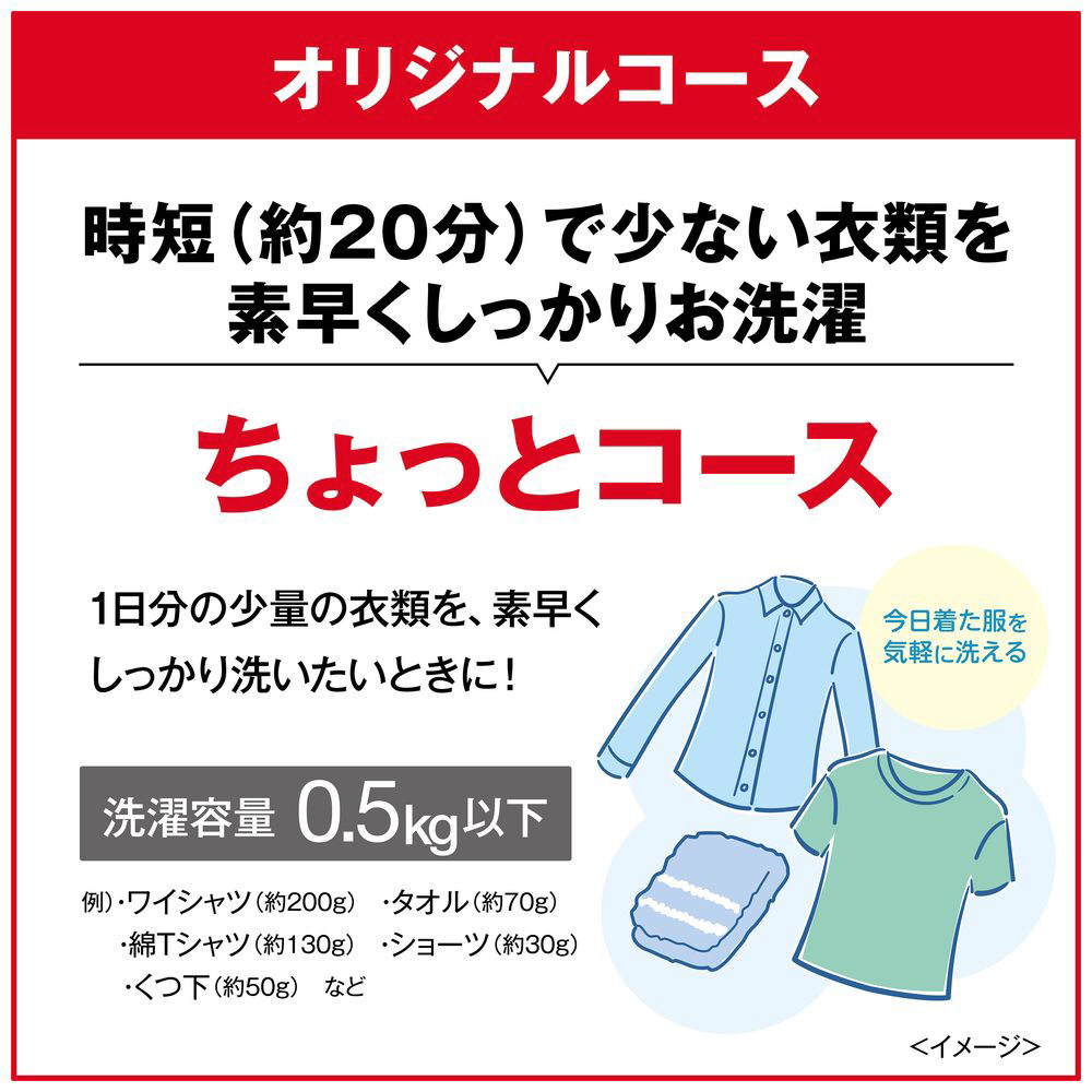 ・少ない衣類を素早くしっかり洗う「ちょっとコース」搭載