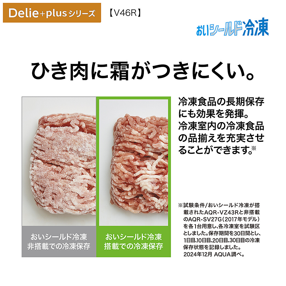 アクア独自の特許技術。霜付抑えて冷凍した食品をおいしく長く保存。
