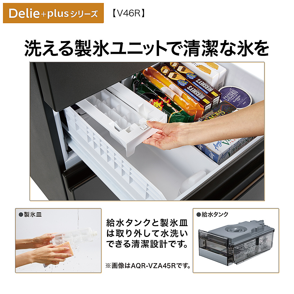| 商品名 | 458L4ドア冷蔵庫 AQUA ウッドブラック AQR-V46R(K) [幅59.5cm /458L /4ドア /右開きタイプ /2024年] 【基本設置料金セット】 |
