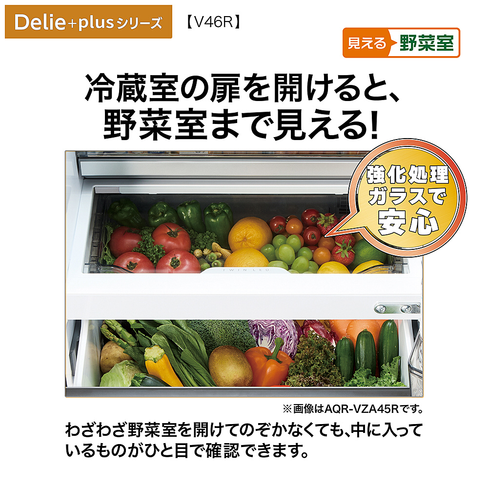 冷蔵室を開けた時に野菜室も見えるので、野菜室を開けずに野菜の保管状況がわかります。