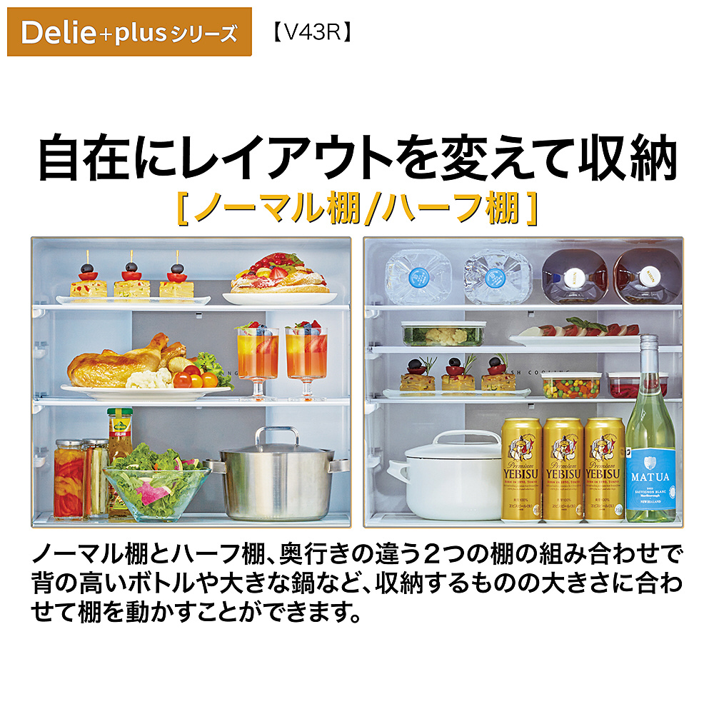 | 商品名 | 433L4ドア冷蔵庫 AQUA ウッドブラック AQR-V43R(K) [幅59.5cm /433L /4ドア /右開きタイプ /2024年] 【基本設置料金セット】 |