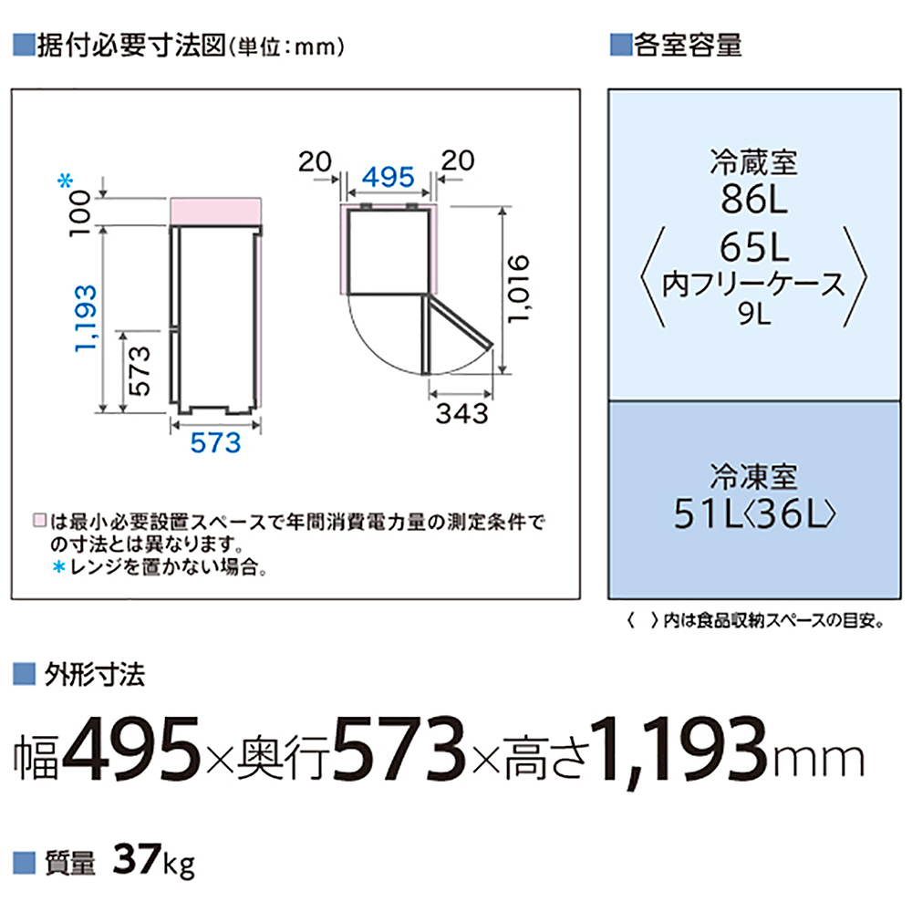 | 冷蔵室容量 | 86L |