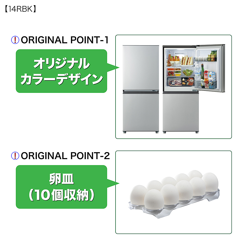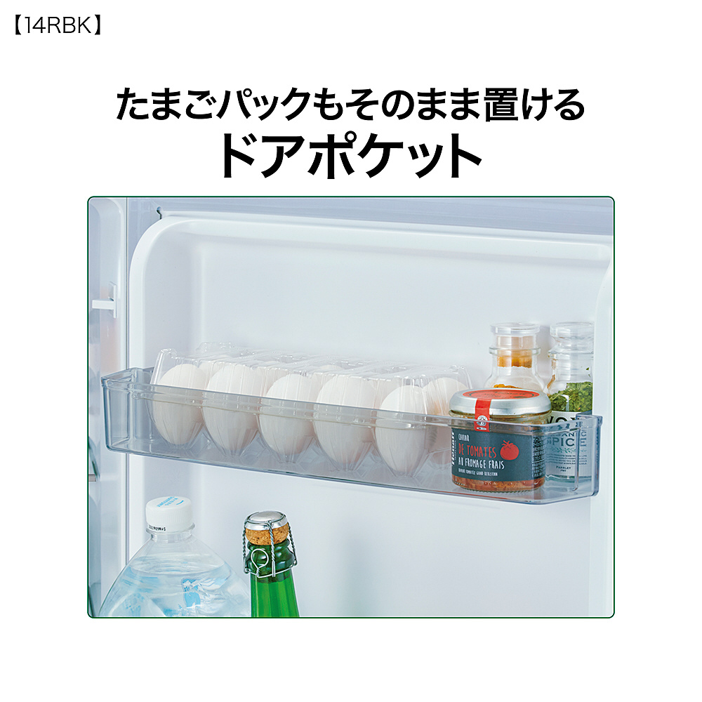 引き出しタイプの「2段51L 大容量フリーザー」搭載。オリジナルカラーデザイン&卵皿付(10個収納)。ビックカメラグループオリジナルモデル。