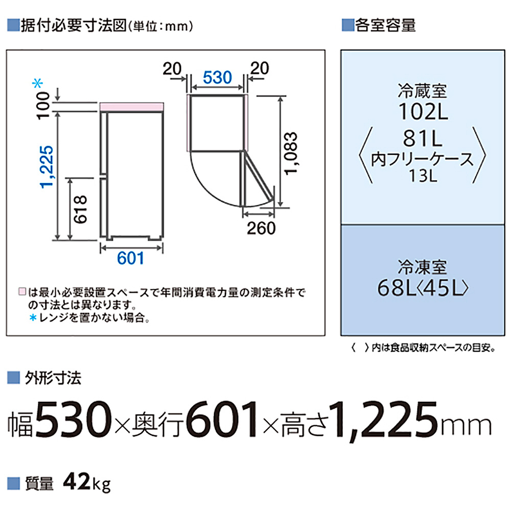 | 冷蔵室容量 | 102L |