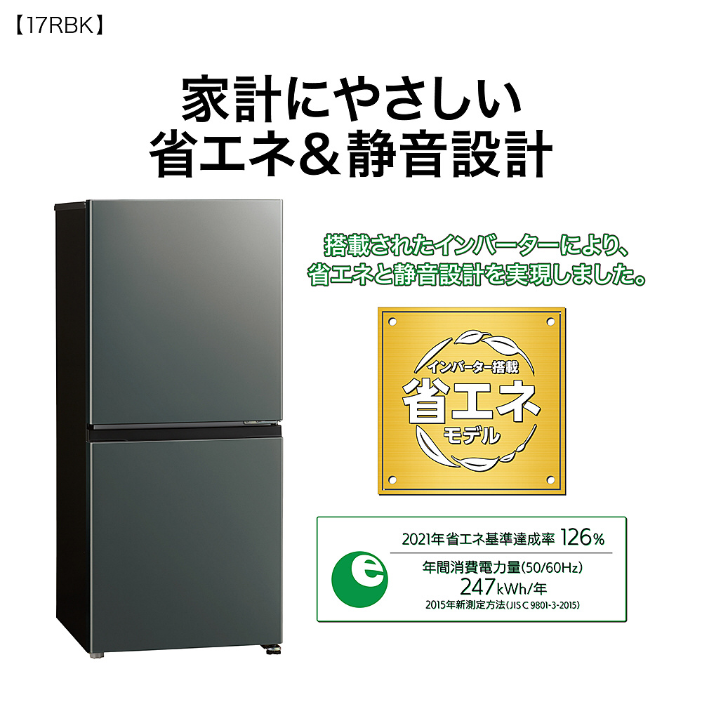 | 商品名 | 冷蔵庫 ダークシルバー AQR-17RBK-DS [幅53cm /170L /2ドア /右開きタイプ /2024年] |