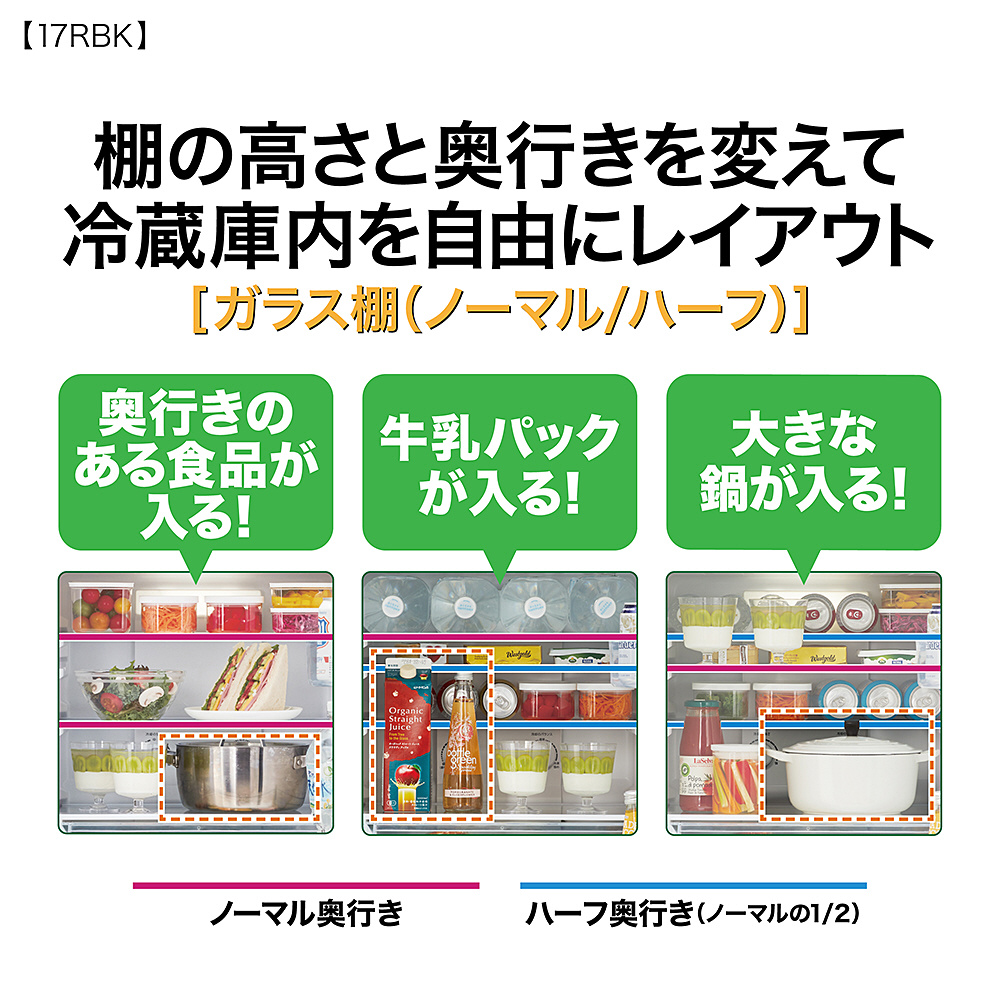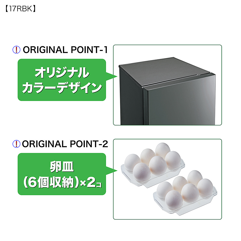 引き出しタイプで冷凍食品をたっぷりストック「3段 68Lフリーザー」搭載。オリジナルカラーデザイン&卵皿付(6個収納×2個)。ビックカメラグループオリジナルモデル。